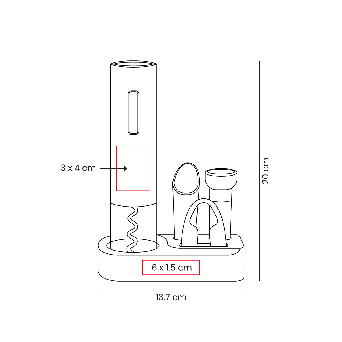 Impresión: Serigrafía, 6 x 1.5 cm Base / 3 x 4 cm Sacacorchos