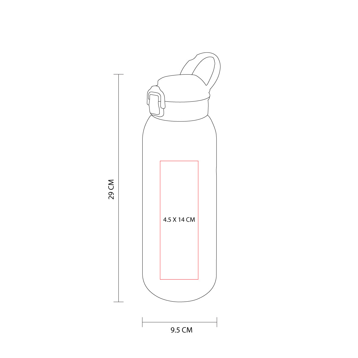 Tapa de plástico con cierre de rosca y boquilla, sobretapa push con botón de seguridad y asa plegable. Cuerpo con terminado rubber, resaques laterales para un mejor agarre, indicador de mililitros y horas para motivar y controlar tus hábitos de hidratación. Incluye filtro de plástico y caja individual.