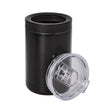 Doble pared. Cerrado al vacío. Pared interna y externa de acero inoxidable. Tapa de plástico con válvula de seguridad y tapa para usar de portalatas con tamaño de 355ml. Mantiene temperatura caliente 6 hrs y temperatura fría 8 hrs aproximadamente. Incluye caja individual.
