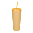 Doble pared. Pared interna y externa de plástico. Tapa de plástico con cierre de rosca, incluye popote de plástico. Su singular diseño y su tapa hermética, garantizan que puedas disfrutar de tus bebidas favoritas en cualquier lugar, sin preocuparte por derrames. Capacidad de 22 Oz. Base de 6.7 cm de diámetro. Incluye caja individual.