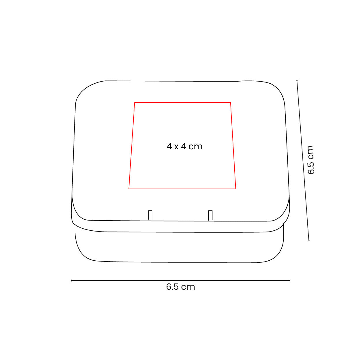Medidas: 6.5 x 6.5 x 2 cm Estuche / 5.5 x 5.5 cm Aplicador