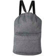 Bolsa-mochila con tirantes gruesos y cerrado de jareta. Bolsa frontal con cierre.
