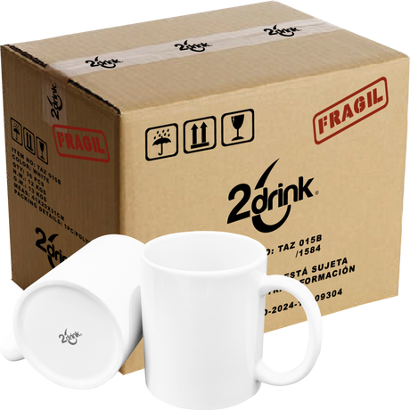 Taza de cerámica 11oz FRISIA Blanca Premium AAA 2drink (Caja de 36 piezas)