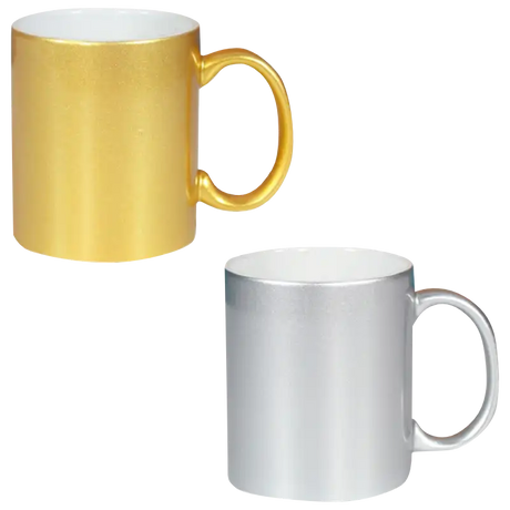 Taza de cerámica dorada y plateada. Reforzada (Caja de 36 pzas) Blue Heat