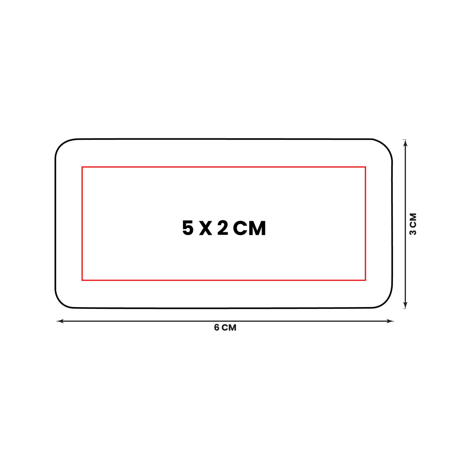 Placa metálica para grabado mediana. Incluye 4 pines de presión, mica adherente protectora y bolsa individual. Grosor máximo de encaje 5 mm. Disponible a la venta únicamente en la compra de algún producto textil de catálogo. El precio incluye el grabado de un logo y una posición. Mínimo para grabado de 50 piezas. No aplica grabado personalizado.
