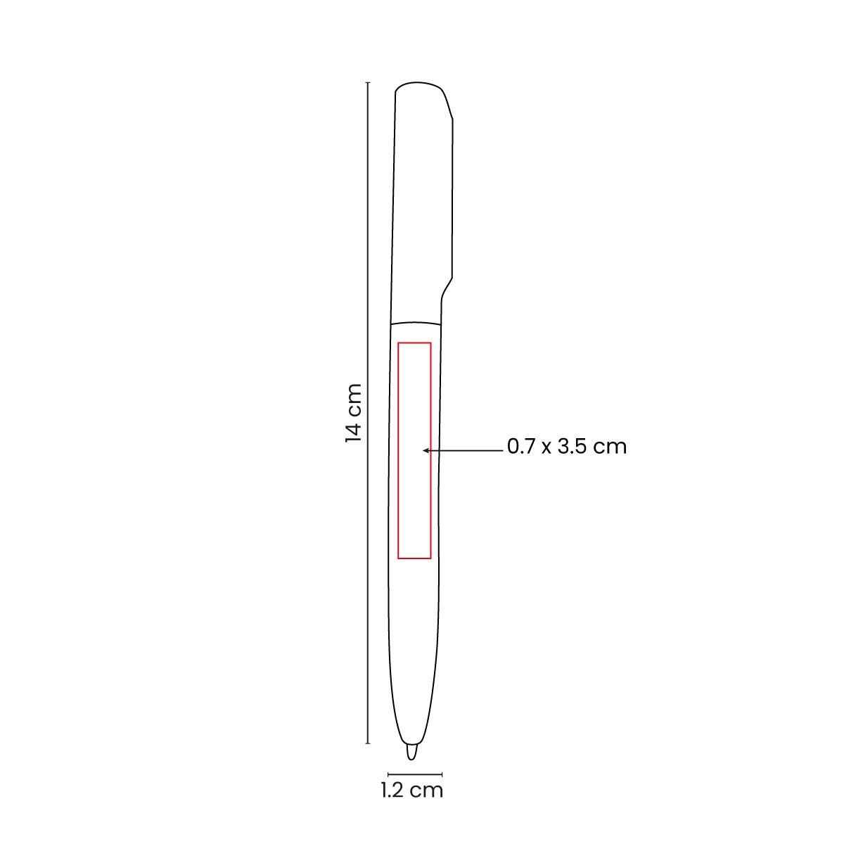 Impresión: Serigrafía, 0.7 x 3.5 cm