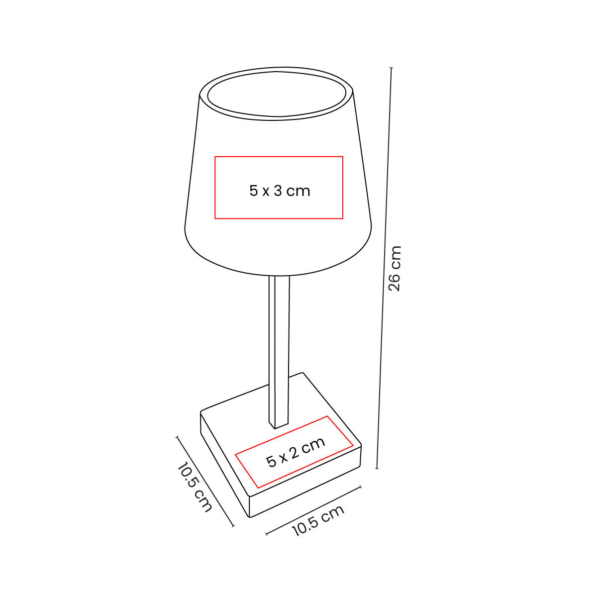 Impresión: Serigrafía, 5 x 3 cm Cabeza / 5 x 2 cm Base