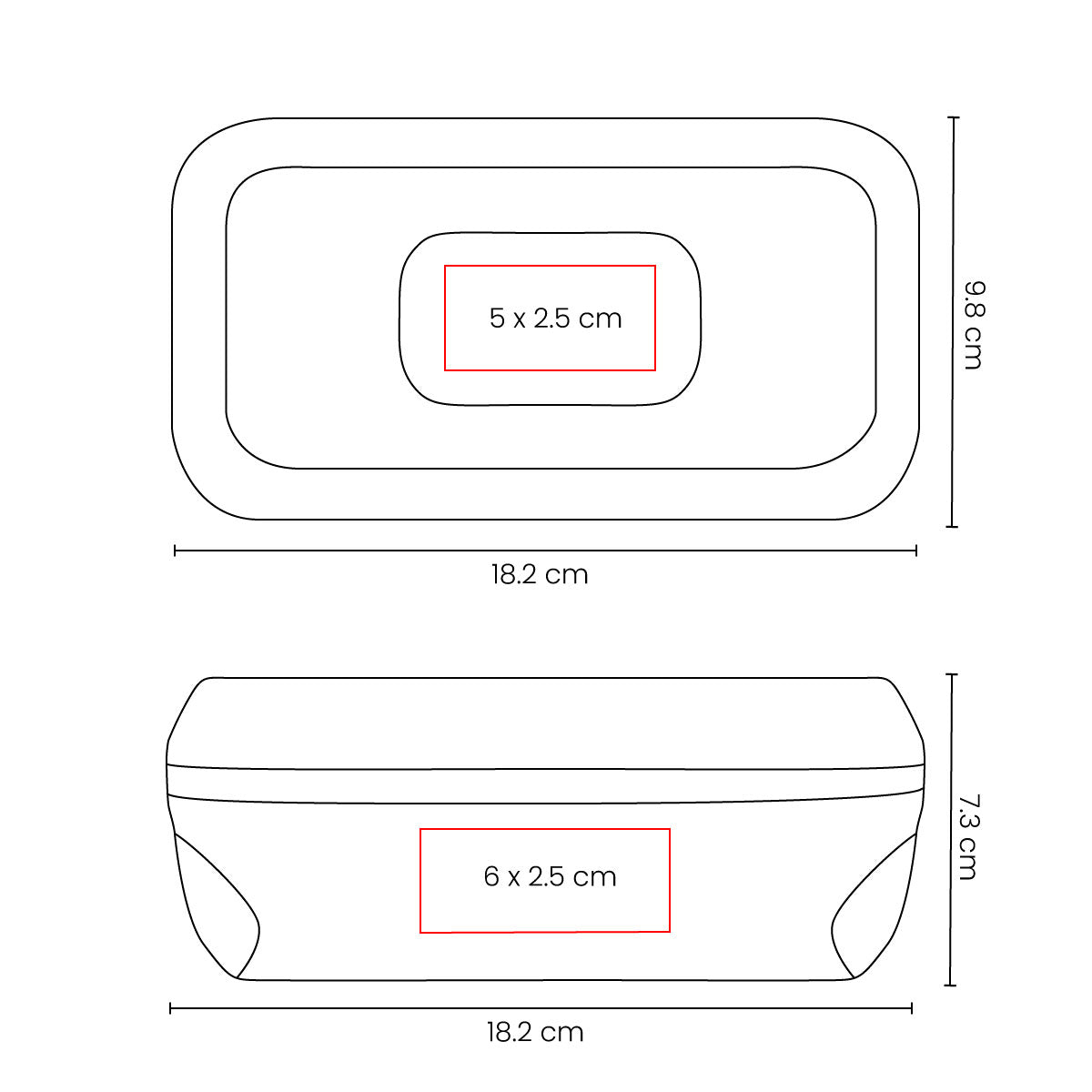 Impresión: Serigrafía / Tampografía, 5 x 2.5 cm / 6 x 2.5 cm