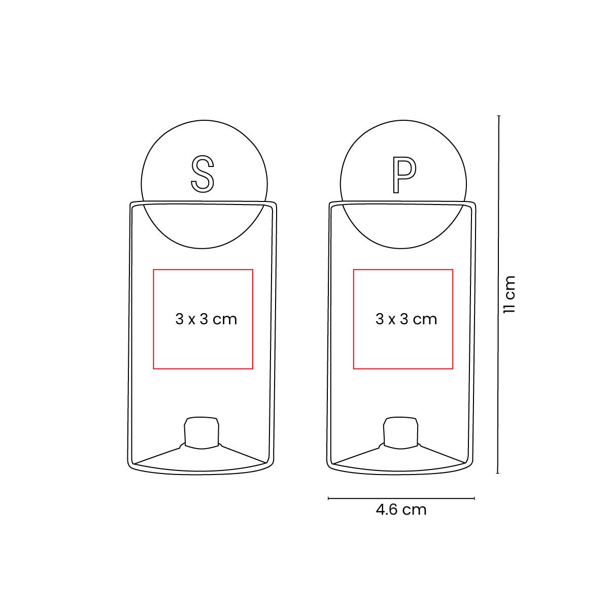 Impresión: Serigrafía, 3 x 3 cm