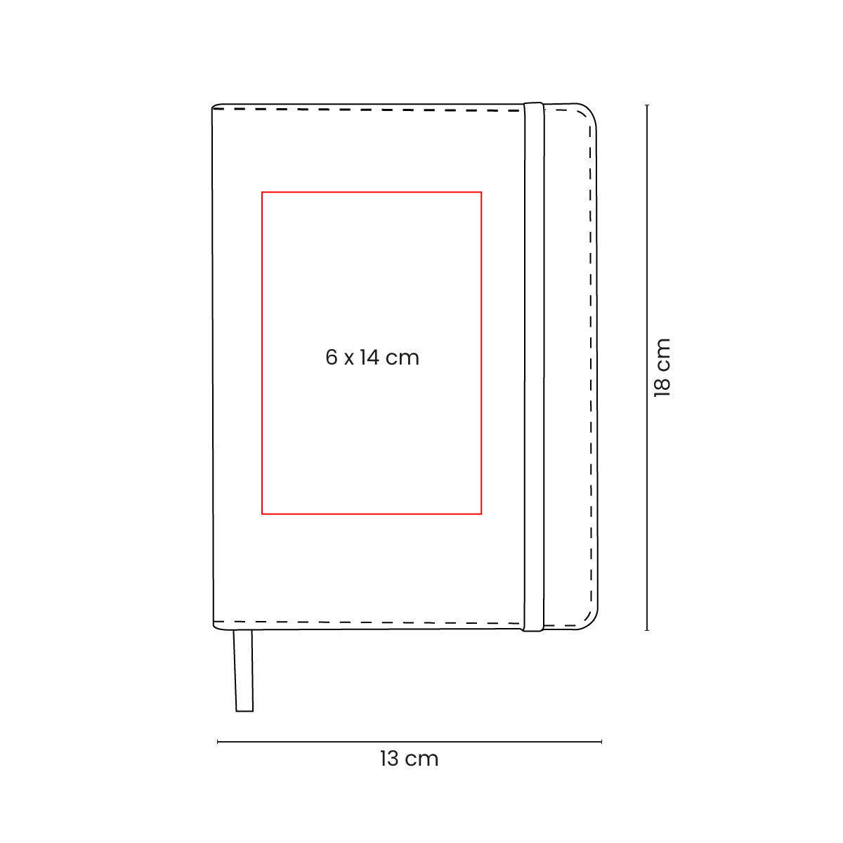 Libreta con 70 hojas de raya fabricada con piel reciclada. Incluye separador de hojas y elástico para cerrar.
