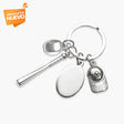 Medidas: 3.1 x 8.2 cm Llavero / 2 x 3.1 cm Placa