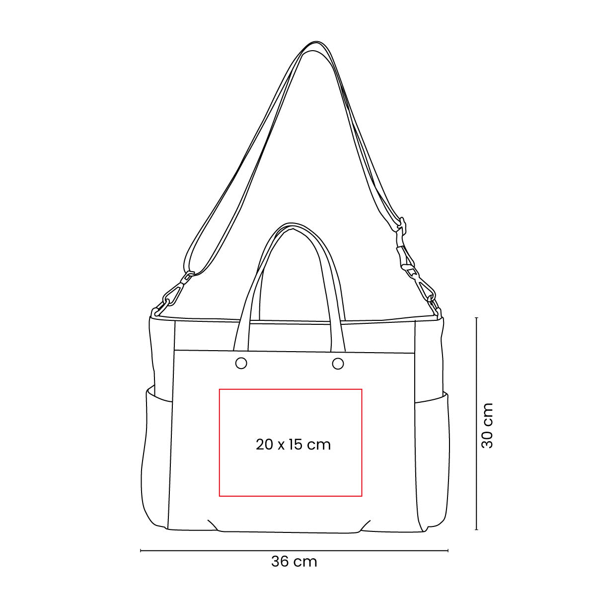 Bolso portafolio. Su compartimento principal incluye un separador acolchado para laptop de hasta 15''. Contiene un bolsillo frontal y uno al reverso con cierre, para asegurar tus pertenencias. Sus bolsillos laterales de acceso rápido, son ideales para pequeños accesorios. Incluye un asa para hombro con correa ajustable y removible, sus broches metálicos permiten retirarla facilmente. En la parte posterior cuenta con banda que facilita su transporte en trolley.
