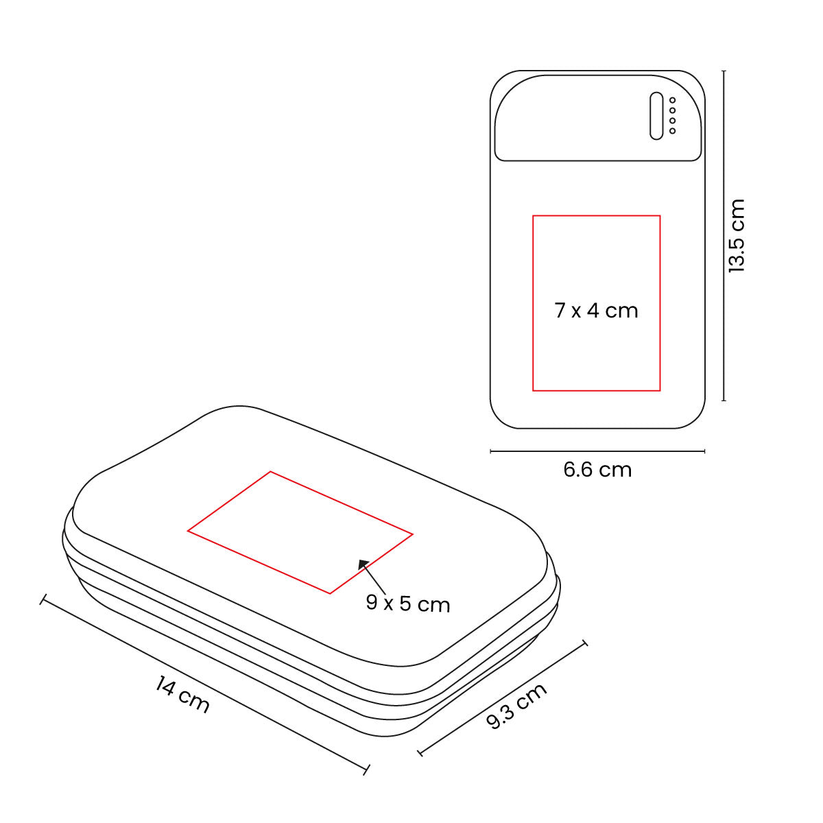 Impresión: Serigrafía, 9 x 5 cm Estuche / 7 x 4 cm Power Bank