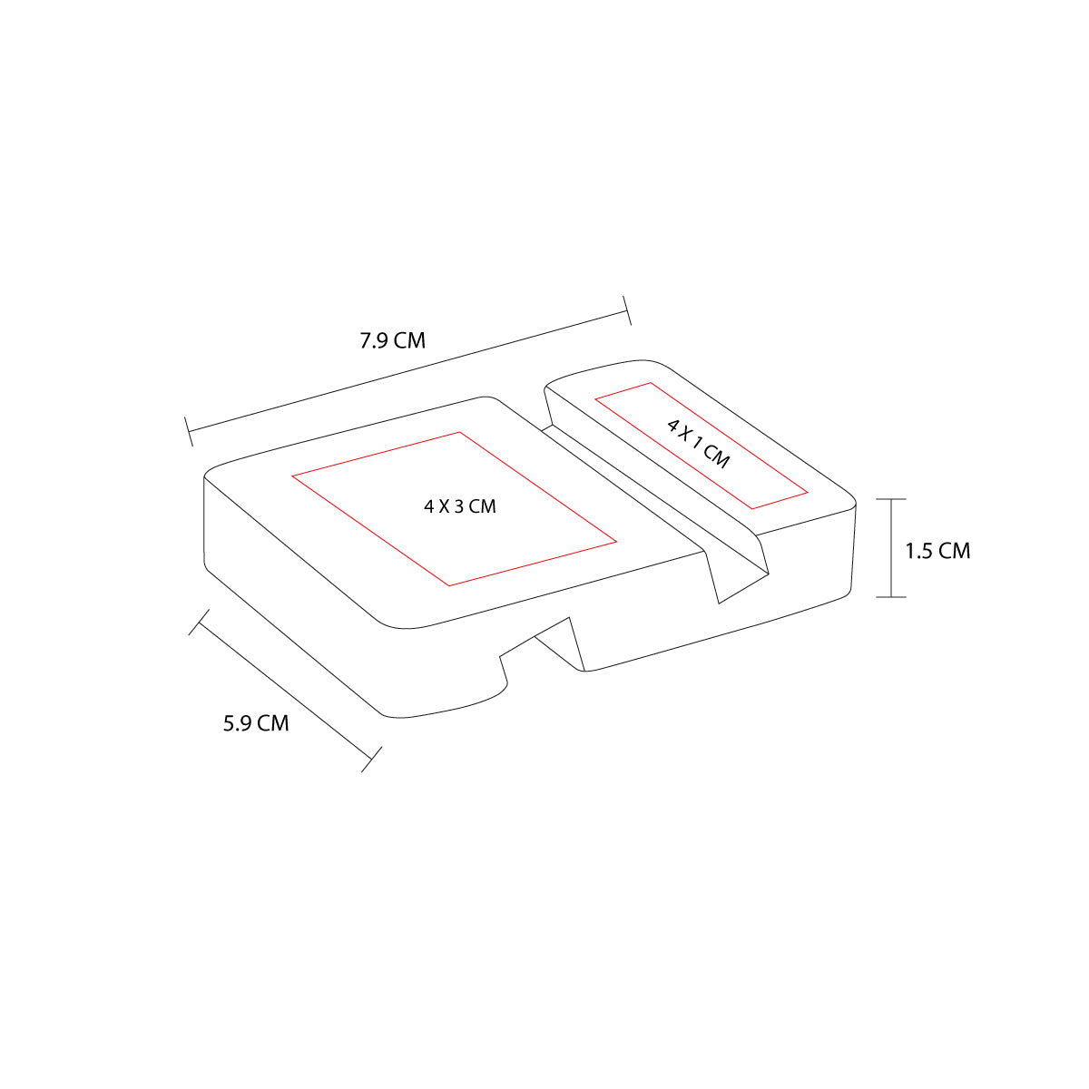 Impresión: Láser / Serigrafía, 4 x 3 cm Arriba / 4 x 1 cm Abajo