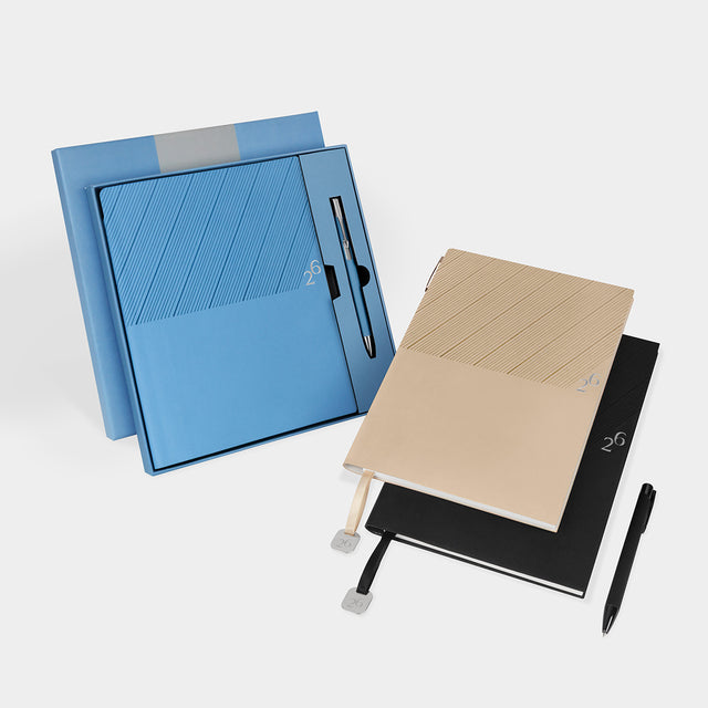 Medidas: 16 x 21.4 cm Agenda / 1 x 13.5 cm Bolígrafo