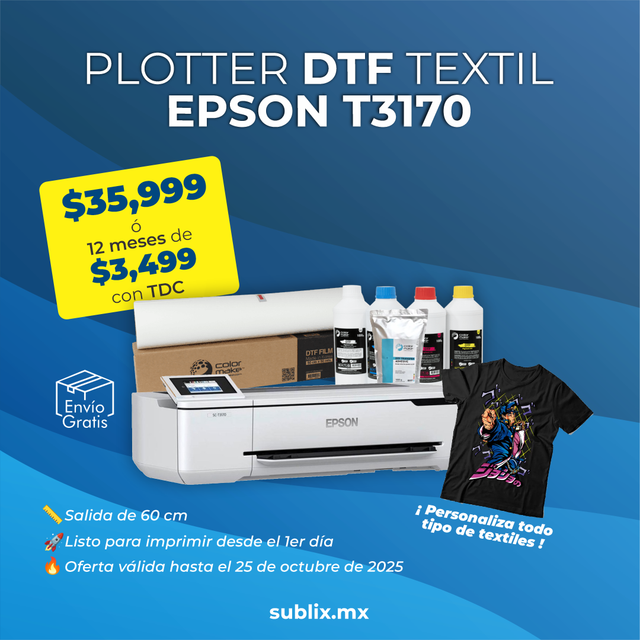 - Plotter Epson T3170 nuevo, configurado para impresión DTF textil.